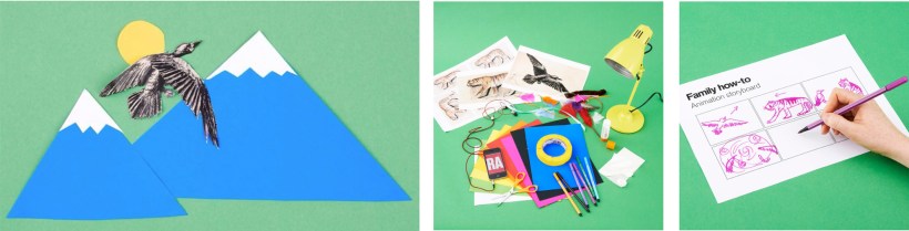 Here is a lovely project to add to the Animated Zoetrope, Monster Chomper, and the Shadow Puppet projects. It’s one of the Royal Acadamy family projects to do at home: you don’t need amazing drawing skills for this animation project as you can make images using cut-outs from magazines.